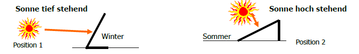 Durch den 75°-Winkel kann das Gerät im Winterhalbjahr und beim Betrieb mit Halogenlampen im Labor aufrecht gestellt werden (Position 1), im Sommerhalbjahr bei hoch stehender Sonne wird das Gerät im Freien zur Sonne ausgerichtet flach auf den Boden oder auf einen Tisch gelegt (Position 2). Eine integrierte rot leuchtende LED zeigt die Betriebsbereitschaft an, sie leuchtet bereits auch im Innenraum.